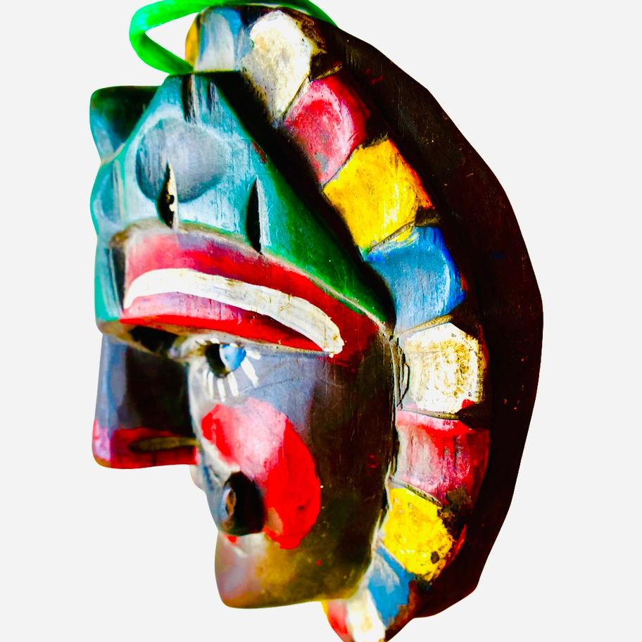 Handcrafted from wood and painted by local artisans, this mask represents a vivid piece of Central American folk history. It was traditionally used in parades and cultural festivals celebrating identity, faith, and resistance.